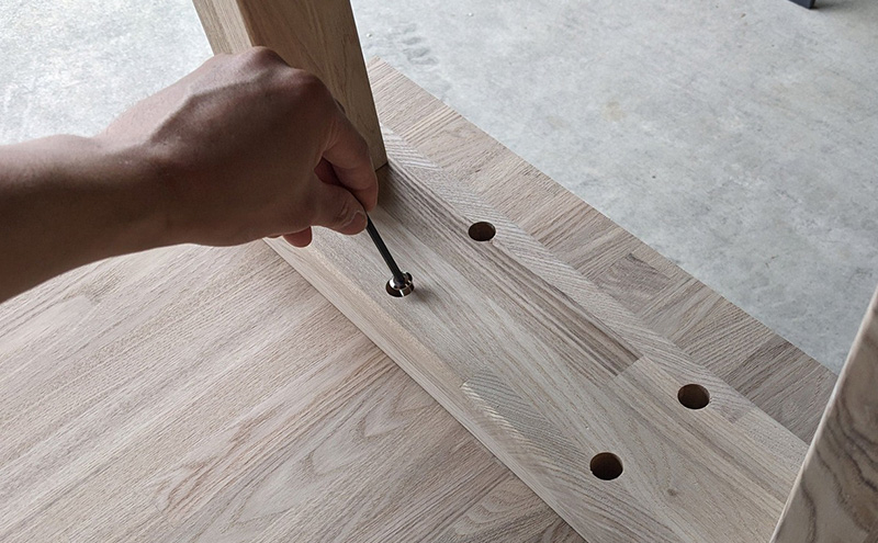 テーブル脚はすべてほぞ組で、組立・加工しており、ほぞ穴の中でがっちりと組まれ一体化することで、横揺れなどの力に負けない強度を生み出します。