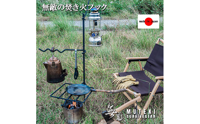 [№5568-0222]無敵SURVIVEGEAR 無敵の焚き火フック 焚き火 ハンガー 焚き火スタンド ゴトク ハンガー ポットハンガー ランタンハンガー アイアンギア アウトドア キャンプ