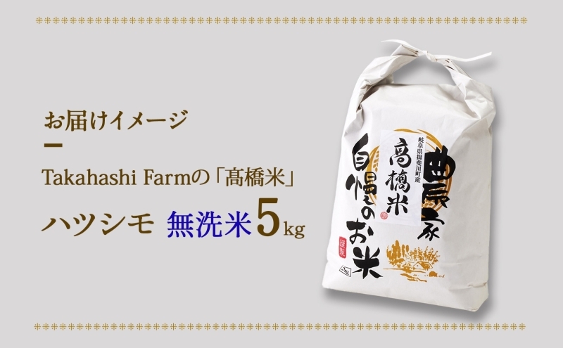 [№5568-0424]< R8年産 先行予約 >米 ハツシモ「高橋米」無洗米 5kg×1袋 令和8年産 5キロ お米 精米 白米 ごはん 米 ご飯 はつしも ブランド米 大粒 炊飯 お弁当 ライス ふっくら お取り寄せ 送料無料 Takahashi Farm 岐阜県 揖斐川町