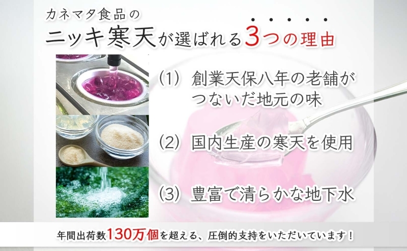本物の寒天ならではの「コツコツ」とした硬めの質感に仕上げました。