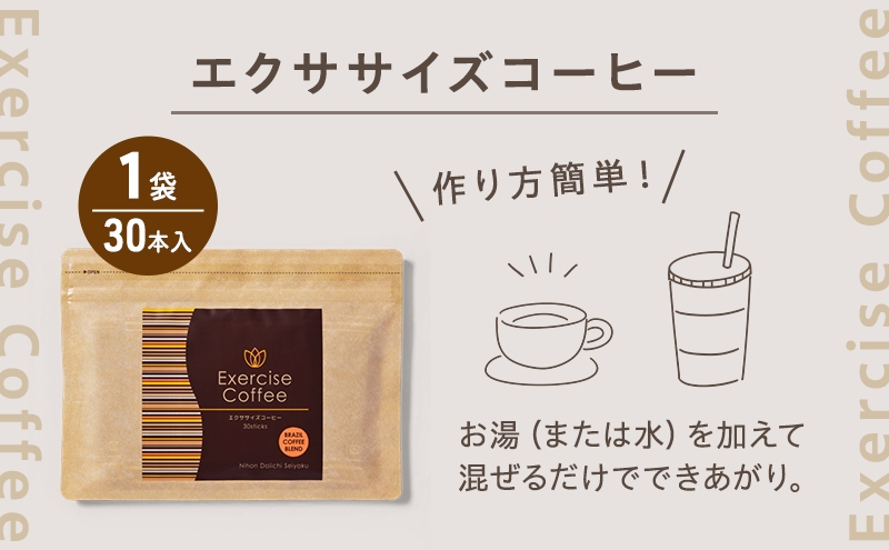 [№5568-0519]定期便 3回 エクササイズ コーヒー 30本入り 1袋 美容 健康 ダイエット 飲料 珈琲 ポリフェノール アミノ酸 食物繊維 コーヒークロロゲン酸 コエンザイムQ10 L-カルニチン 燃焼サポート 送料無料 日本第一製薬 岐阜県 揖斐川町