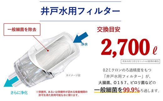 井戸水・湧き水対応浄水器 一般細菌99.9%除去(3年タイプ)