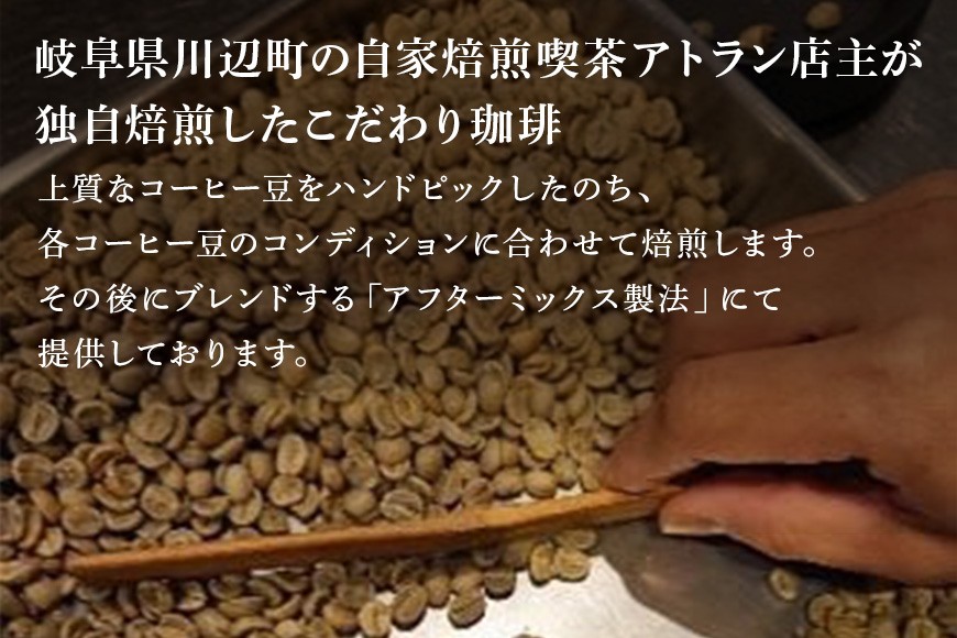 岐阜県川辺町の自家焙煎喫茶アトラン店主が独自焙煎したこだわり珈琲 A-53 自家焙煎珈琲セットB(キリマンジャロ)粉