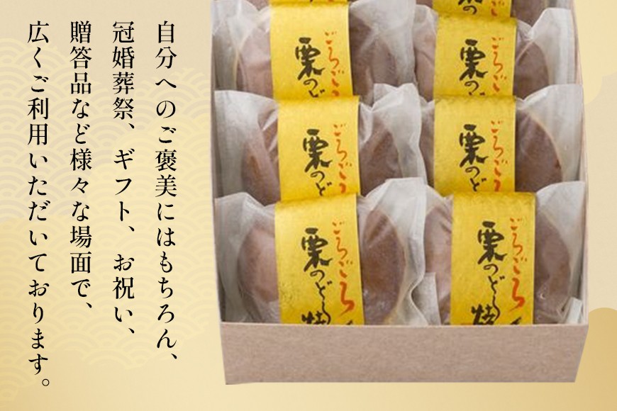 やわらかくこしがある生地の中に、養老軒特製つぶあんと、蜜漬けした栗をふんだんに使ったとても贅沢などらやきです。 ■■■生産者の思い■■■ 「自家製あんへのこだわり」 養老軒のお菓子の美味しさを支えているのが自家製の餡。養老軒では、毎朝、職人がアズキの声を聞きながら、一番おいしくなるタイミングを狙って小豆を炊いています。 「皆さまに喜んでいただきたい」 養老軒のお菓子を召し上がってくださる皆さまへの感謝の気持ちをこめるため、養老軒のお菓子作りは手作りにこだわっています。 ■■■おすすめの用途■■■ 自分へのご褒美にはもちろん、冠婚葬祭、ギフト、お祝い、贈答品など様々な場面で、広くご利用いただいております。 ■■■提供■■■ 有限会社 養老軒 〒509-0306 岐阜県加茂郡川辺町下川辺273-1