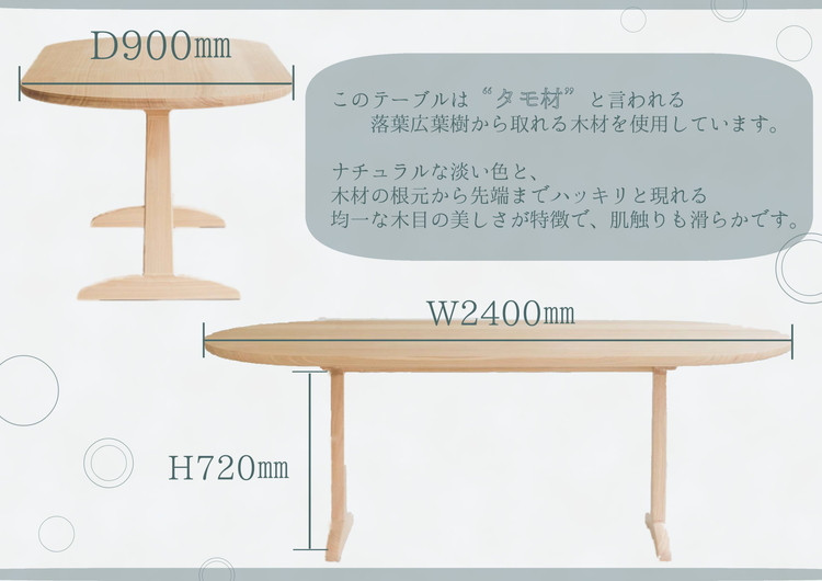 このテーブルはタモ材と言われる落葉広葉樹から取れる木材を使用しています。