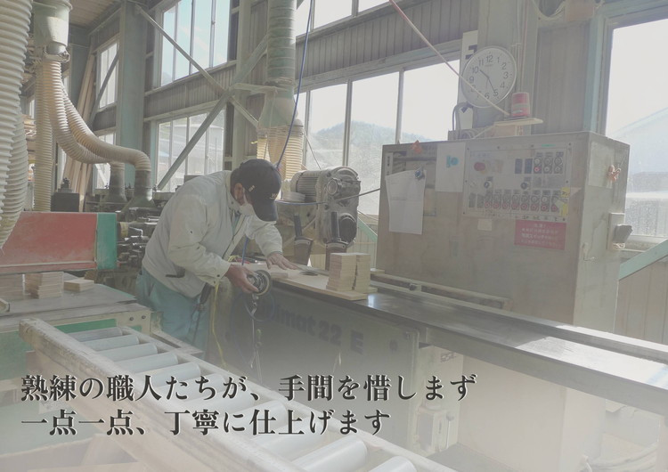 ナチュラルで淡い色と木材の根元から先端までハッキリと現れる均一な木目の美しさが特徴で、肌触りも滑らかです。