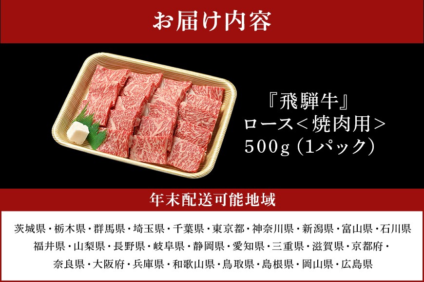 毎年恒例の年末にお届けする飛騨牛です! 【9月1日先行予約開始】年末配送 飛騨牛 焼肉用 ロース 500g 冷蔵配送 配達日指定可 年内配送 焼肉 バーベキュー 焼き肉 冷凍可 年末お届け【大晦日まで指定可能】 (48)