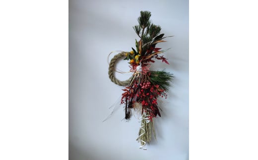 しめ縄に松や南天、稲などをあしらったお正月飾りです。