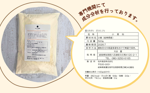 容量 | 岐阜県産小麦粉(ユキチカラ) 500g×2袋 計1Kg 原料:小麦(岐阜県産) |