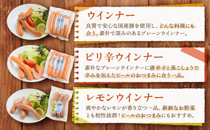 お肉本来の味が楽しめる!美濃白川手作りウインナーの3種セットです。 【3回定期便】 白川ハム ウインナー3種セット ( ウインナー ・ ピリ辛ウインナー ・ レモンウインナー ) ウインナー ういんなー ソーセージ 朝食 詰め合わせ 白川町 / 白川町農業開発 [AWAH018]