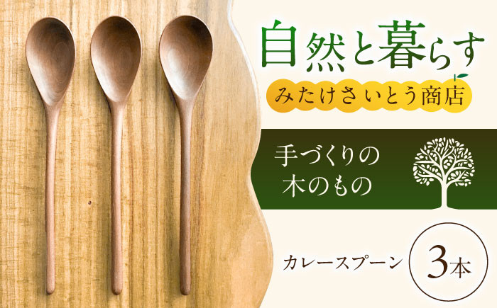 オイル仕上げの手作業の一点ものです。暖かみのある仕上がりです。 手づくりのカレースプーンの3本セット ~みたけさいとう商店~ [AVAZ006]
