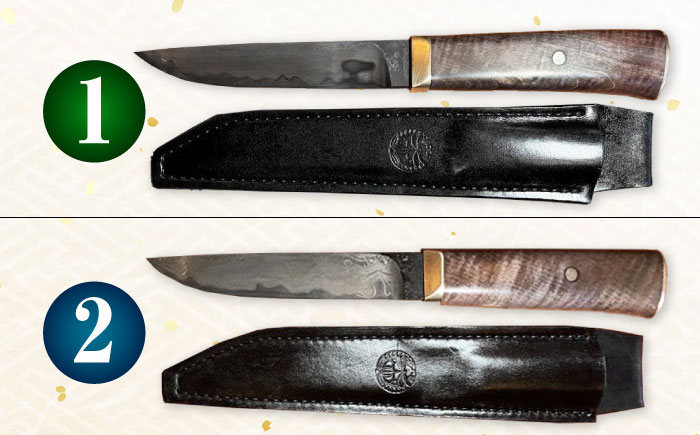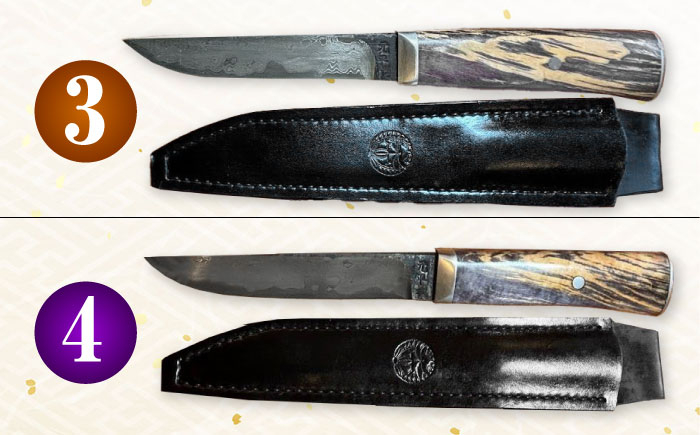 御嵩町のふるさと納税の返礼品用に限定4本で制作しましたが、刃体の表情やハンドルの杢目や染まり具合が全て異なりますので、各々が世界に1本のナイフとなります。