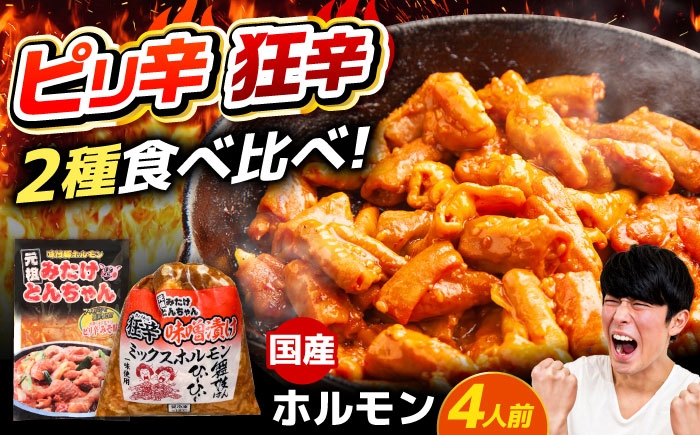 辛党の皆様に贈る豪華な辛口セット! 「元祖みたけとんちゃん」 【辛口セット】 ピリ辛みそ味×ミックスホルモン狂辛 各1袋(4人前)/ モツ もつ ホルモン レバー 辛口 / 御嵩町 / 藤よし [AVAA054]