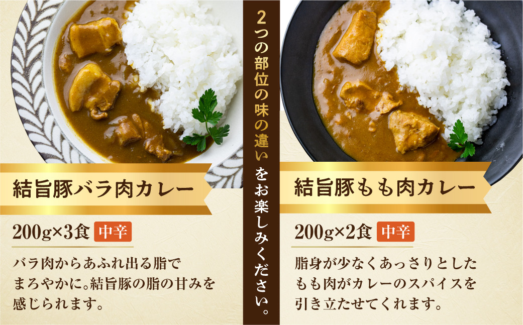| 容量 | 結旨豚カレー中辛 5食セット(1食200g) バラ肉使用×3食 もも肉使用×2食 |