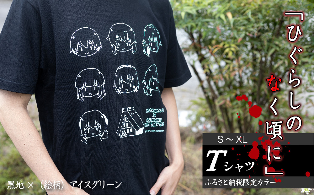 チョイスPayポイントと交換できる品 「ひぐらしのなく頃に」とのコラボTシャツ。ふるさと納税「限定」カラーです。 白川郷 「ひぐらしのなく頃に」Tシャツ 白川村 ふるさと納税限定カラー 選べるサイズ コラボ アニメ 世界遺産 10000円 [S318]