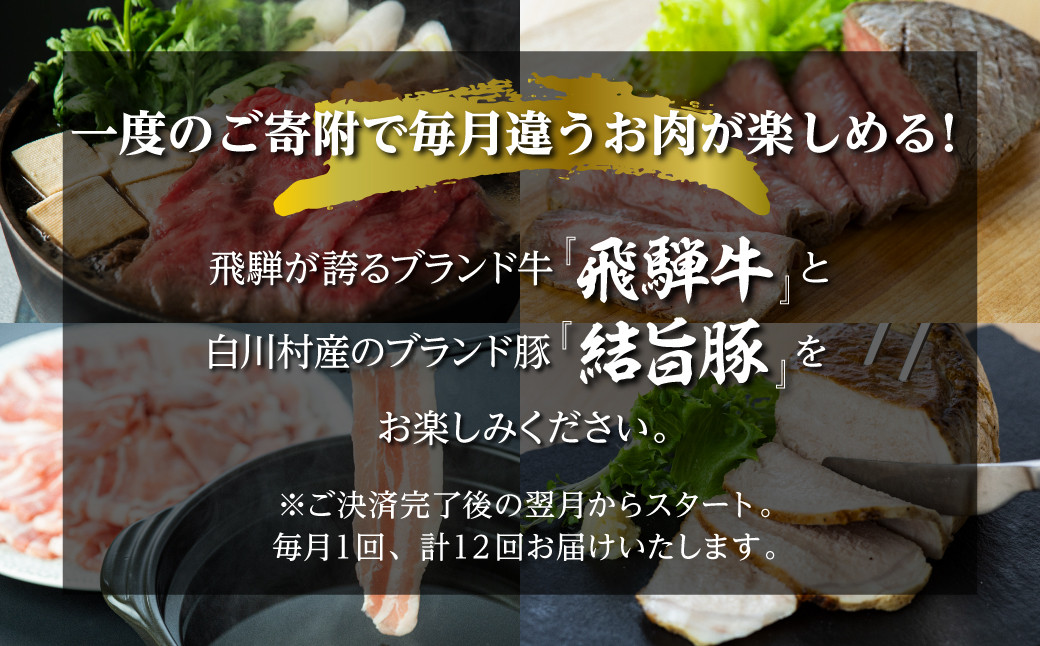白川郷 まるごと定期便 全12回 お届け 飛騨牛&結旨豚 肉づくし …