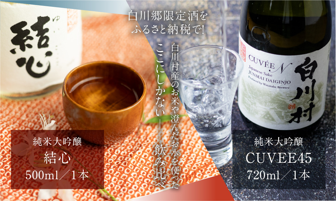 チョイスPayポイントと交換できる品 白川村限定の飲み比べセットです。 純米大吟醸 飲み比べセット 結心 500ml CUVEE45 720ml 1本ずつ [S429]