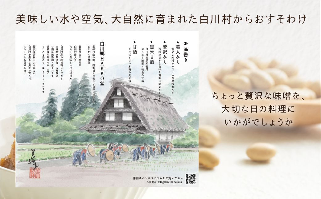 白川村産大豆と白川村産米を使用した、天然醸造の味噌です。
