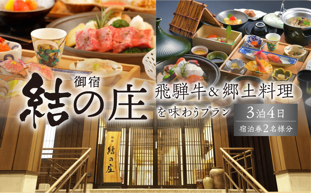 チョイスPayポイントと交換できる品 【基本プラン】★飛騨牛と郷土料理を味わう2食付き。大自然に抱かれて過ごす温泉宿 白川郷 天然温泉 ゆるりの湯 御宿 結の庄 3泊4日 2名様 ペアチケット 594000円 [S754]