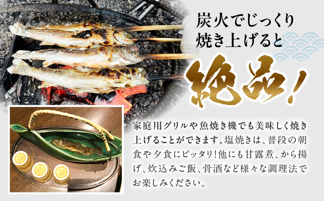 塩焼きの他に、甘露煮、から揚げ、炊込みご飯、骨酒など様々な調理法でお楽しみください。