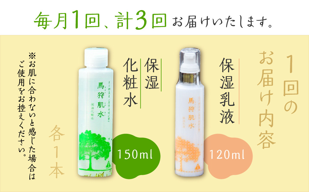 チョイスPayポイントと交換できる品 香りさわやか、肌なじみよい 定期便 3回お届け 天然温泉 馬狩肌水 保湿化粧水 保湿乳液セット 天然温泉水使用 17000円 [S778]