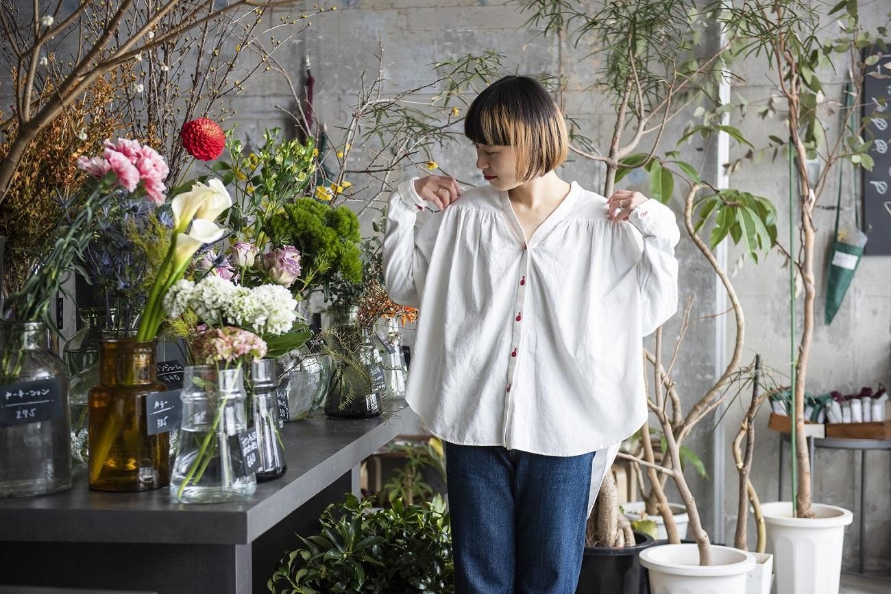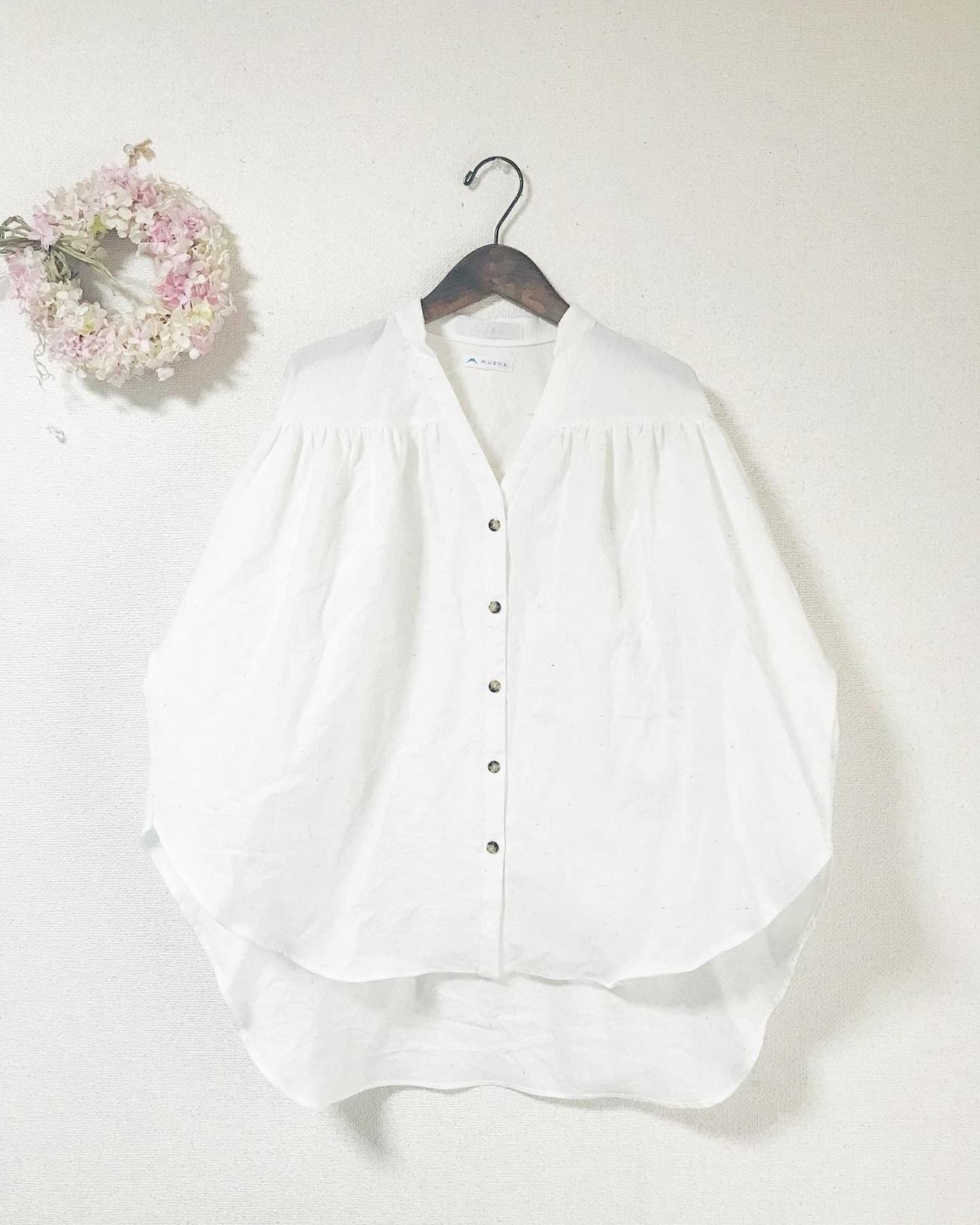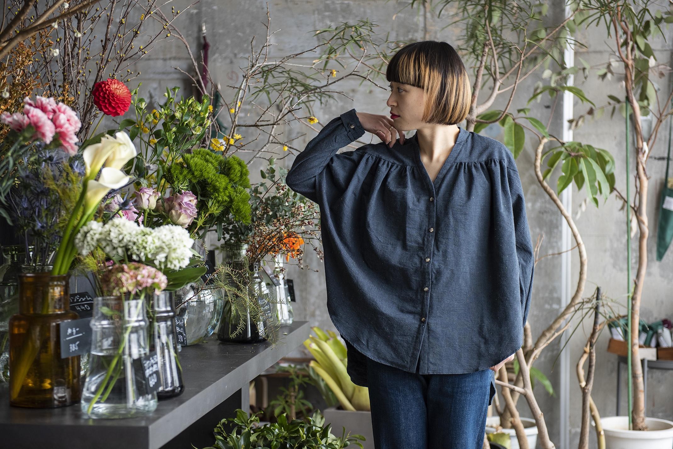 身幅はオーバーサイズなデザインに対してお袖はすっきり、やや細身なデザイン。前後の着丈の長さがアシンメトリーな点も特徴的なシャツブラウスです。