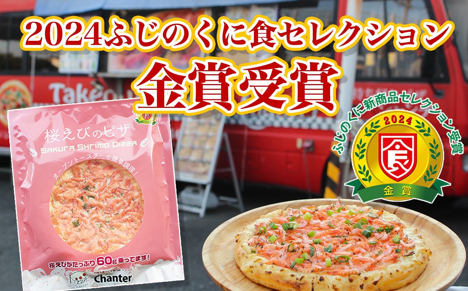 桜えびのピザは2024年に静岡県の「ふじのくに食セレクション」にて【金賞】を受賞した商品!桜えびをピザ一面にふんだんに載せたこと、自家製ジンジャーソースの独自性と完成度、なにより美味しいとの評価を頂けました♪