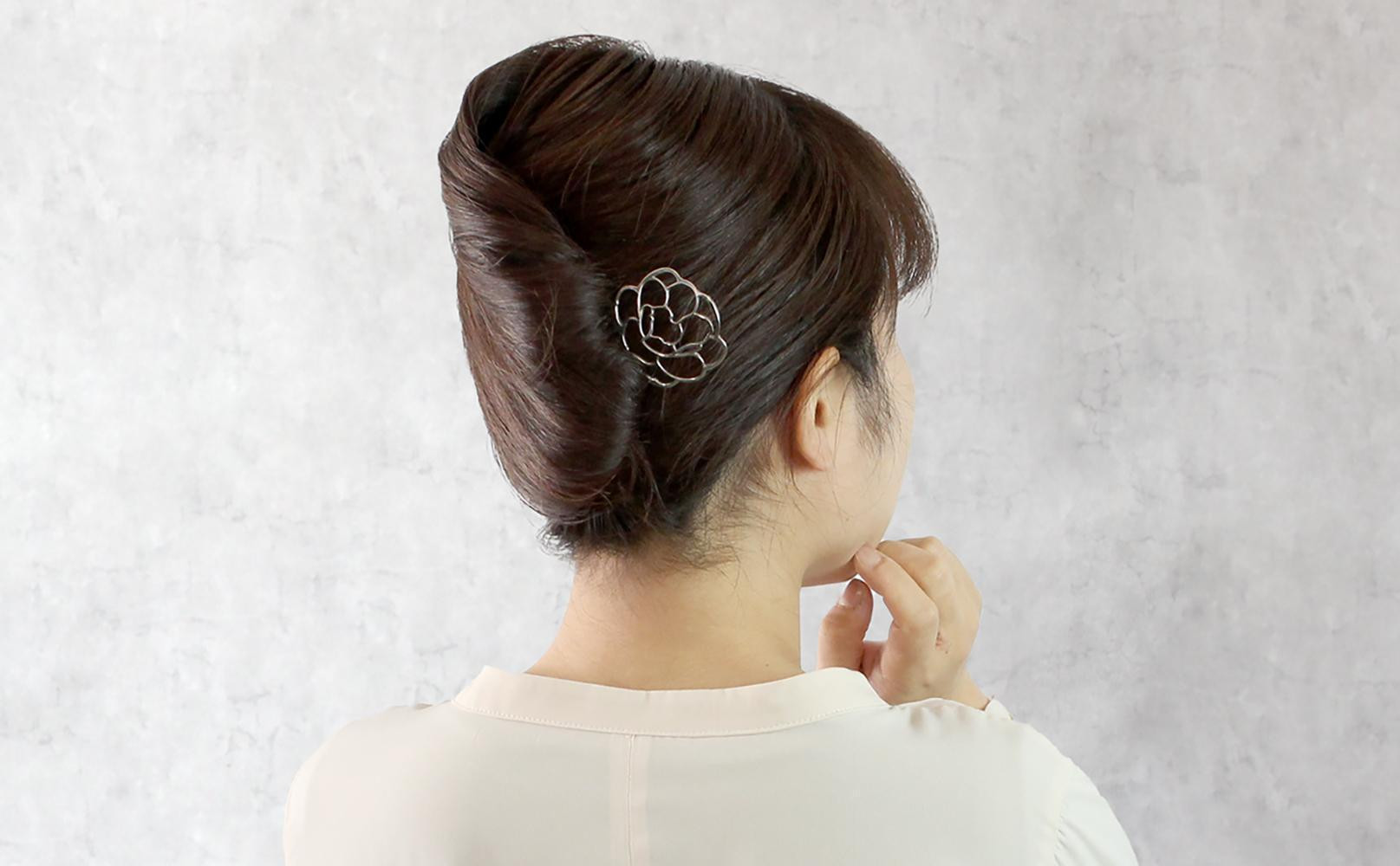 特徴的な足の形状で、ヘアピンを使わずとも、しっかり髪をまとめてくれる万能アイテムです。