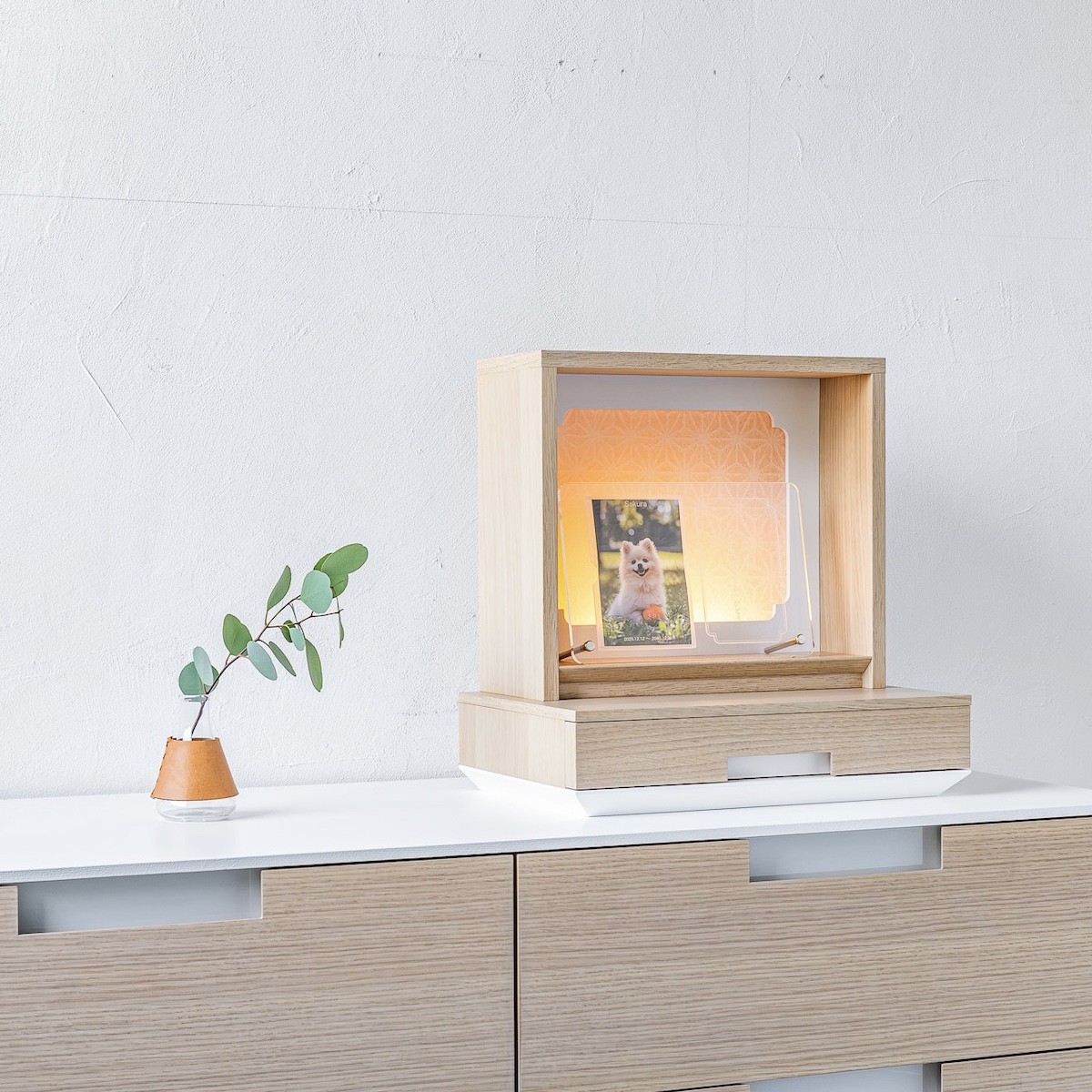 松永工房 MASTER PIECE オフィシャル限定品 メモリアルボックス&メモリアルプレート ナチュラルカラー×ホワイトカラー ペットのお仏壇 供養 祈り 日本語縦書きメッセージ モダンインテリア シンプルデザイン マスターピース