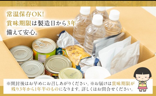 消費期限 | 製造日より3年(お届け商品は賞味期限1年半~3年のものになります。) 保存方法:常温保存 |