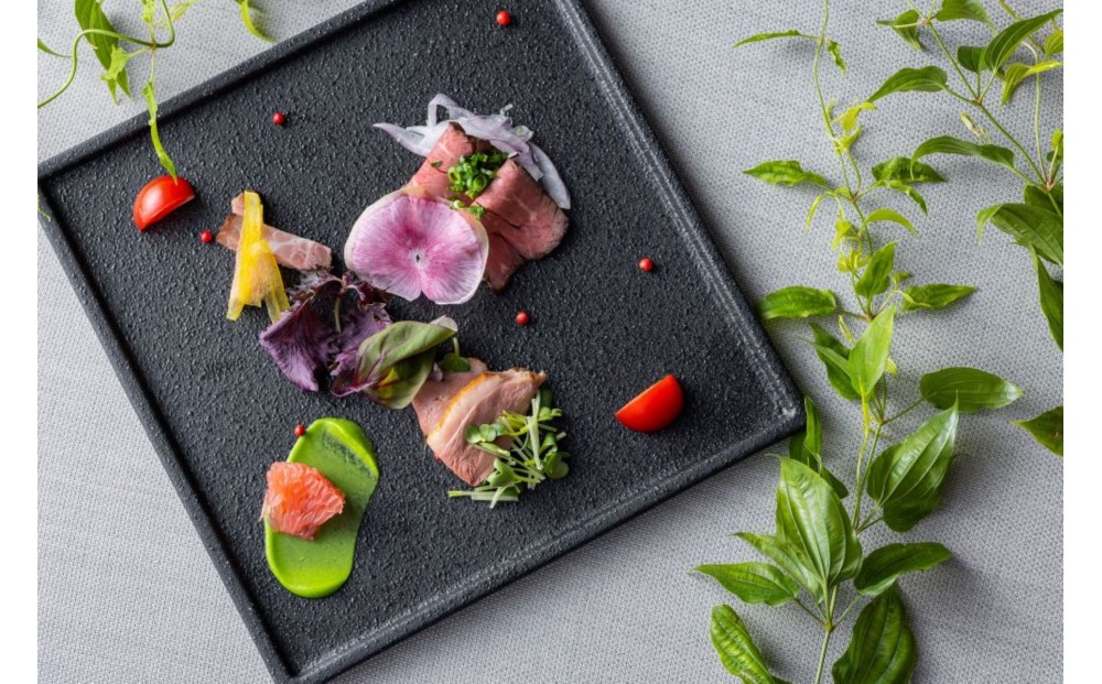 心地よい風がそっと頬をなでる中、グランシェフ山本が腕をふるう、季節と地元の恵みを活かした創作フレンチをお楽しみいただけます。