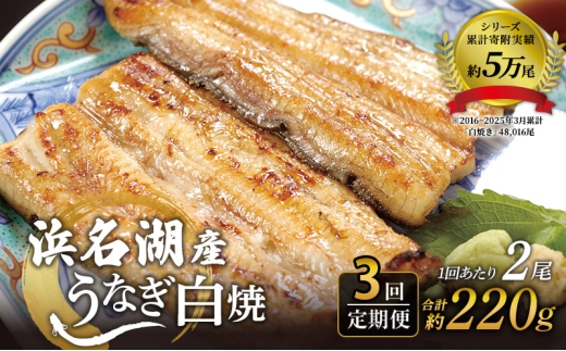 【3か月定期便】浜名湖産 うなぎ白焼 約140g×2尾入り 計3回 …