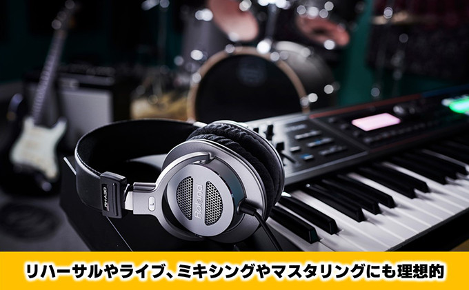 浜松の楽器メーカー「ローランド」の純正ヘッドホン。長時間の音づくりや楽曲制作、練習にも苦痛を感じさせない、オープンエア型モニター・ヘッドホン。