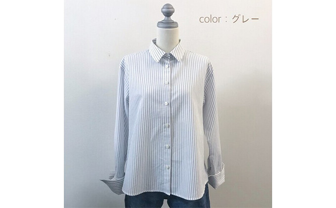 【遠州織物】武襯衣 先染ストライプドビー織シャツ レディース 長袖 グレー [№5786-3036]