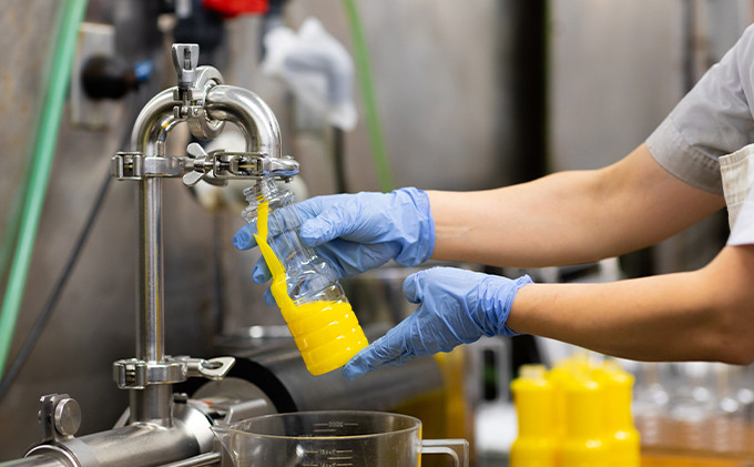 浜松市内の工場において、原材料の仕入れから、ドレッシングの攪拌や調合、容器詰めまでの工程を行うことにより、半分を一定程度以上上回る割合の付加価値が生じているもの