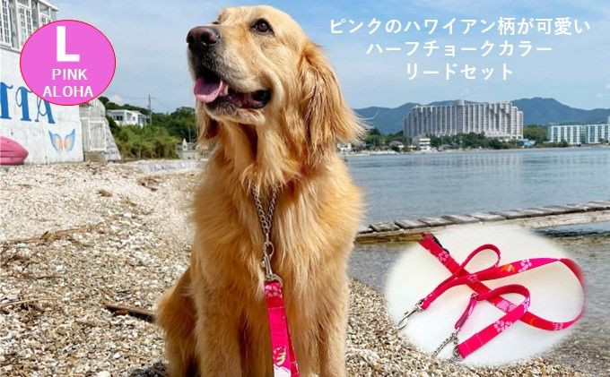 【大型犬用・Lサイズ】 ハーフチョークカラーとリードのセット(アロハピンク) 雑貨 日用品 ペット用品 [№5786-4007]