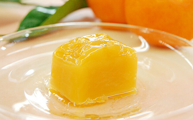 三ヶ日青島みかんのピューレだけから作られた【三ヶ日100%】の味。みかん果汁の味を大切にして、加える砂糖などの原料は最低限のため三ヶ日青島みかん特有の濃厚な香り、深みのある味わいを楽しめます。上品な和紙に包まれ飾り紐がアクセントになった小さなゼリー。一口サイズながら味わいはみかん1個分以上の満足感。