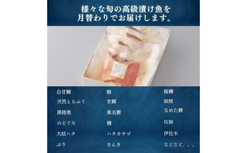 四季の味しんやが毎月その時期にご賞味いただきたい高級漬け魚をセレクトしてお届けするセットです。