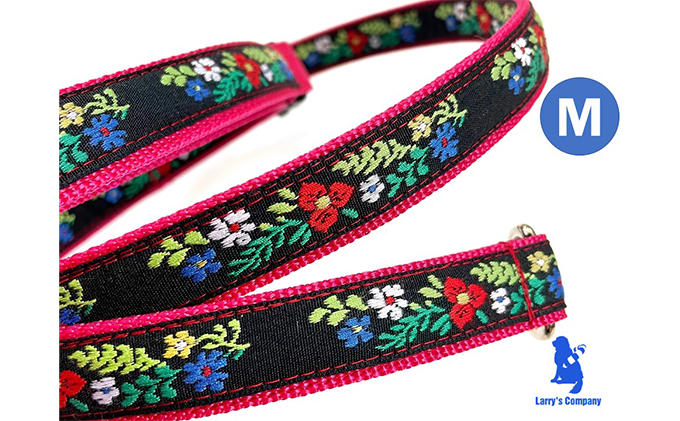 【中型犬用・Mサイズ】ハーフチョークカラーとリードのセット(レッドフラワー&マゼンダピンク) 雑貨 日用品 Мサイズ 日本製 オリジナル 手作り [№5786-4593]