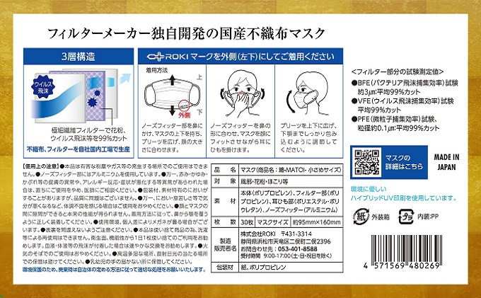 ・不織布・耳紐からマスク本体まで、国内自社工場での一貫生産により高性能と高品質を実現。