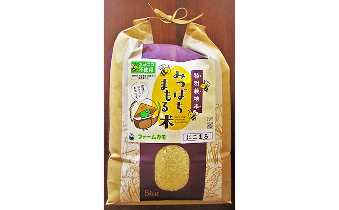 浜松市西区雄踏町の生産者「ファームカモ」の特別栽培米、ブランド名「みつばちまもる米」(人にも自然にもやさしいという意味)の粒大き目でほっこり、冷めても美味しい品種「にこまる」をお届けします。