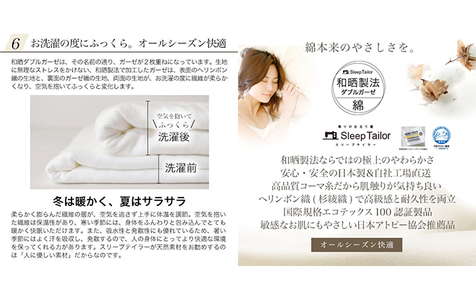 昔ながらの製法で、安心と安全にこだわった和晒ダブルガーゼ。