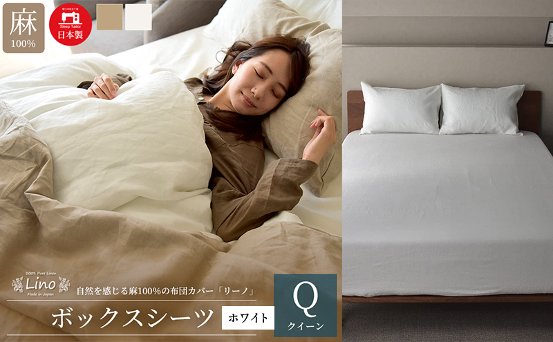 麻100% リネン ボックスシーツ クイーンサイズ ホワイト 「リーノ」 [№5786-5598]