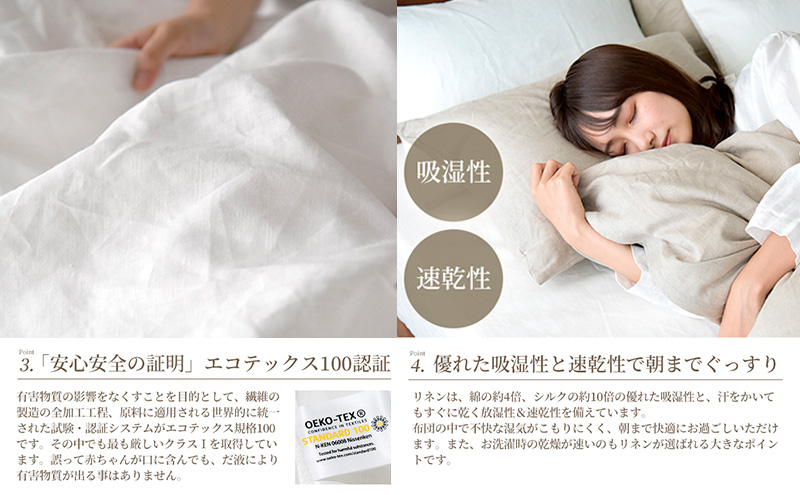 フランス北部やベルギーなどヨーロッパの上質なリネンを使用したカバーリングシリーズ。 国内縫製だから、丈夫で高品質。 「国際規格エコテックス100認証商品」で安心にも配慮しました。ベージュカラーは天然の繊維そのもののカラーで、染色加工などは一切しておりません。そのため、織り糸の産地や入荷時期によりカラーにバラツキがでます。