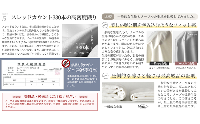 こだわりの生地を自社工場で一枚一枚丁寧に仕立てています。まるでシルクのような寝心地を、是非ご体感ください。