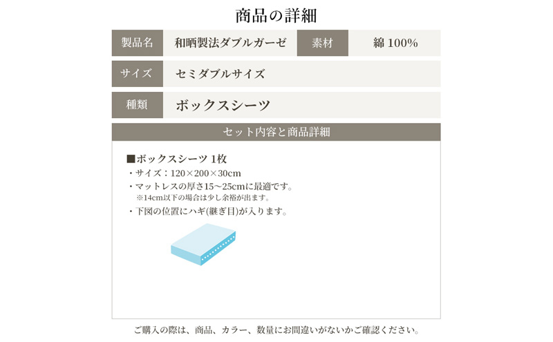 綿100% 和晒製法ダブルガーゼ ボックスシーツ セミダブルサイズ ホワイト「和晒」 [№5786-5709]