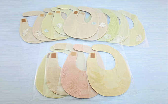 お肌に優しいアロエ染め「スタイ」。遠州織物ジャカードで織り上げ赤ちゃんに優しい膨れガーゼ調生地を使いアロエ単色染めやアオサ染め生地などにアロエを染め重ね固着、何度も染めを繰り返し、お肌に優しい生地にしました。