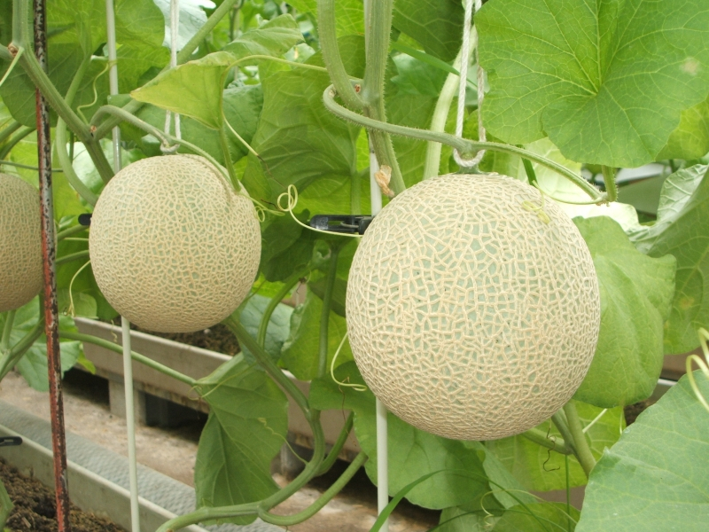 メロンのアンテナ(つる)がT字型になっているのは、静岡のメロンが1株から1果とれた証拠です。