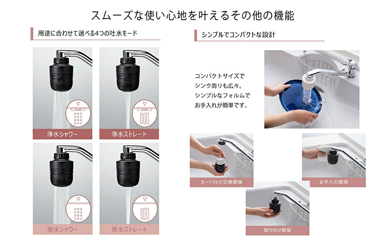 ◆特長2:コンパクトな手のひらサイズ。でも、高機能浄水。