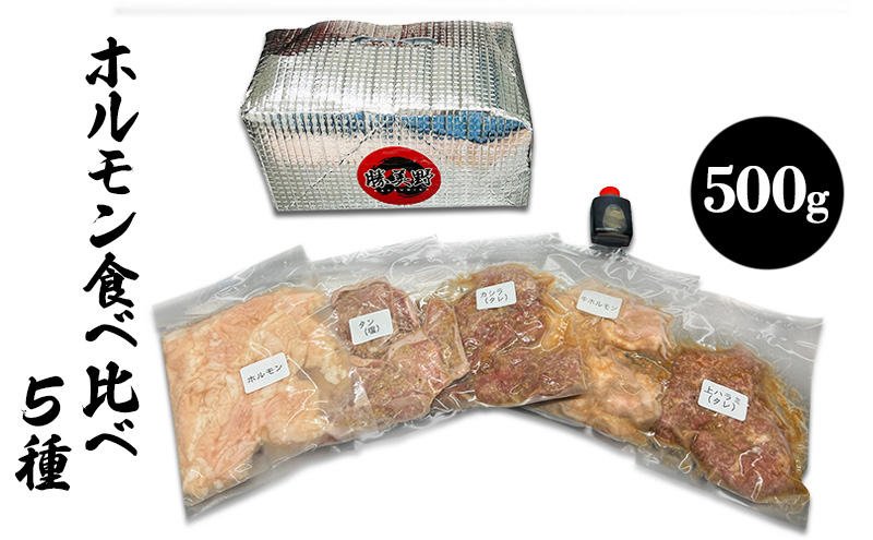 勝美野のホルモン 食べ比べ5種 豚ホルモン(タレ) 豚上ハラミ(タレ) 豚カシラ(タレ) 豚タン(塩) 牛ホルモン(タレ)計500g セット 浜松市 静岡 [№5360-0237]